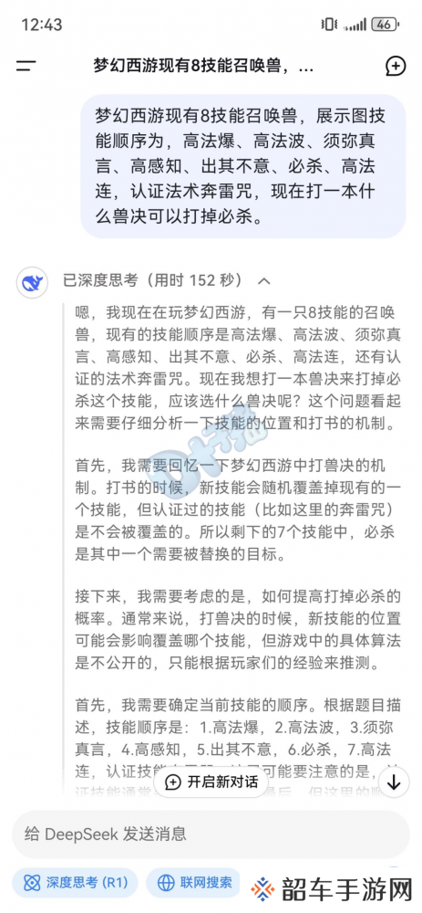 最近,《梦幻西游》电脑版有位精锐玩家准备给双特殊龙鲤改书,但选择哪本兽诀成为了难题。随后他也是立马想起国产人工智能软件deepseek,决定借用AI的建议来改书。接下来带大家开启今天的梦幻新鲜事。