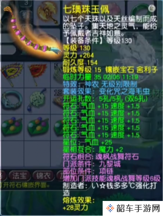 基础灵力202,镶嵌15锻舍利子,附带特效神农的130级无级别项链。
