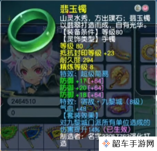 第三件,“3防御”的80级超级简易手镯!