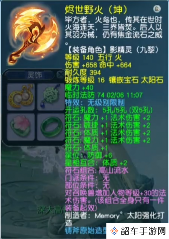 这把五丁开山还是一把非常优秀的法系武器哦。在九黎无法上场的时候,这把武器可以给魔王或女魃使用~