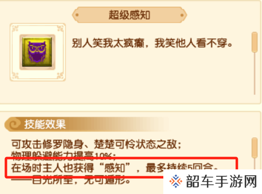 这是为了“超级感知为主人附加感知状态”的效果,在实战中较好的针对精锐比赛中登场率很高的高隐配速宝宝。