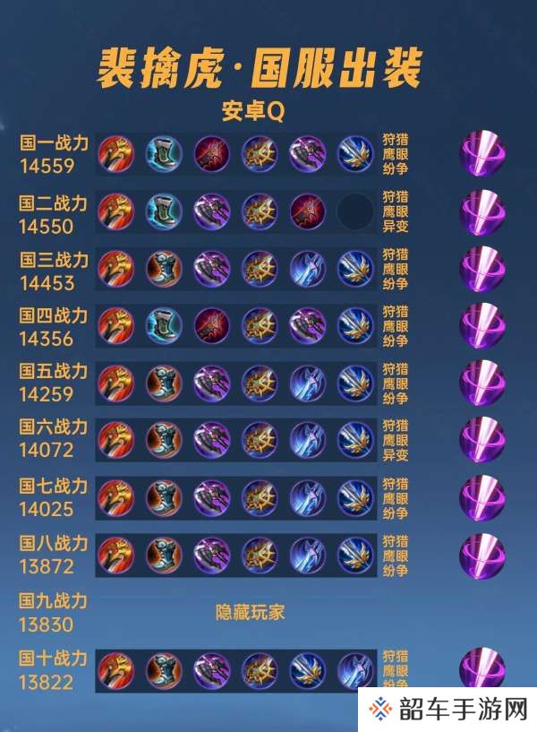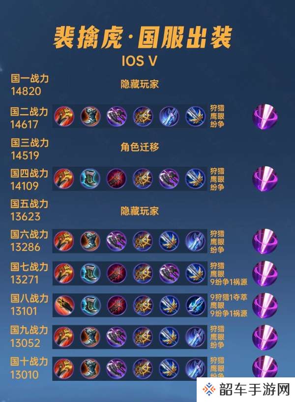 这篇文章我们来看看40位国服裴擒虎的出装铭文汇总。