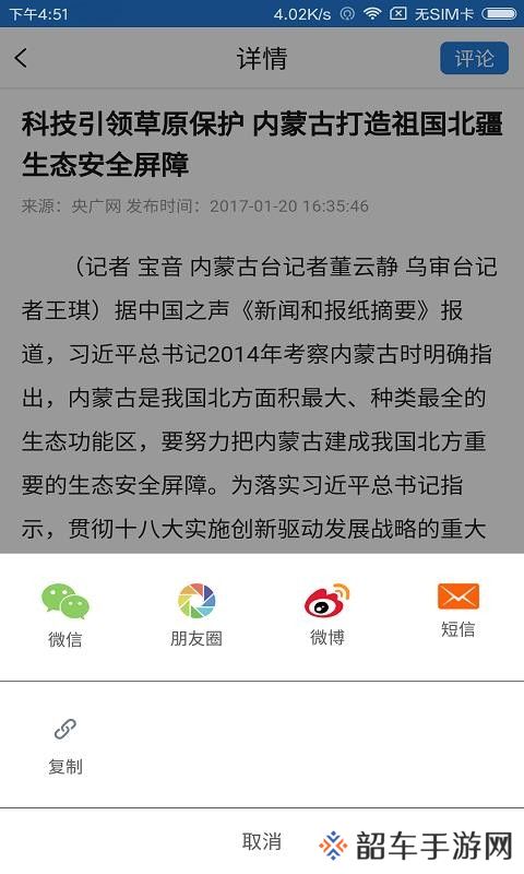多个分享渠道,当分享新闻的时候可以分享到微信、朋友圈和微博以及短信;
