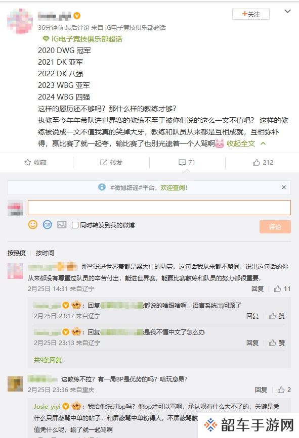 乱成一锅粥了!iG超话疯狂屏蔽黑Rookie帖子 保留指责教练、上单帖