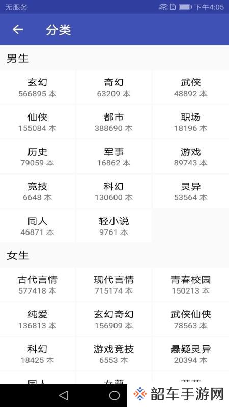 2、查看喜欢的小说类型,通过分类快速查找小说