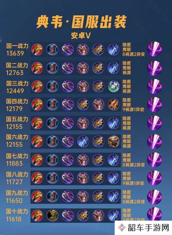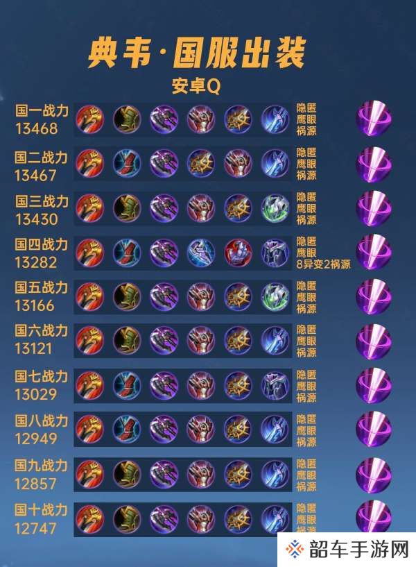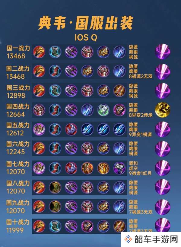 这篇文章我们来看一下40位国服典韦的出装铭文汇总。