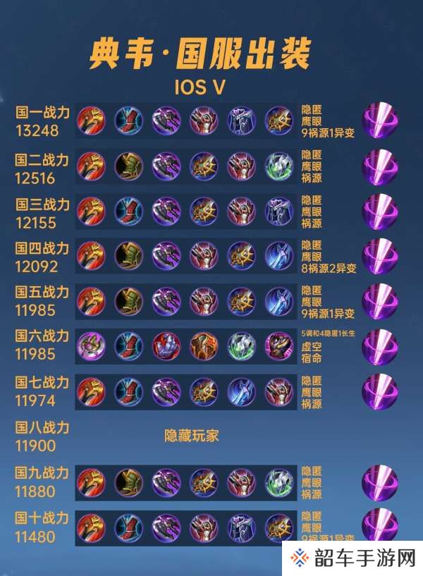 40位国服典韦出装铭文汇总,竟然还有边路能打到国服?